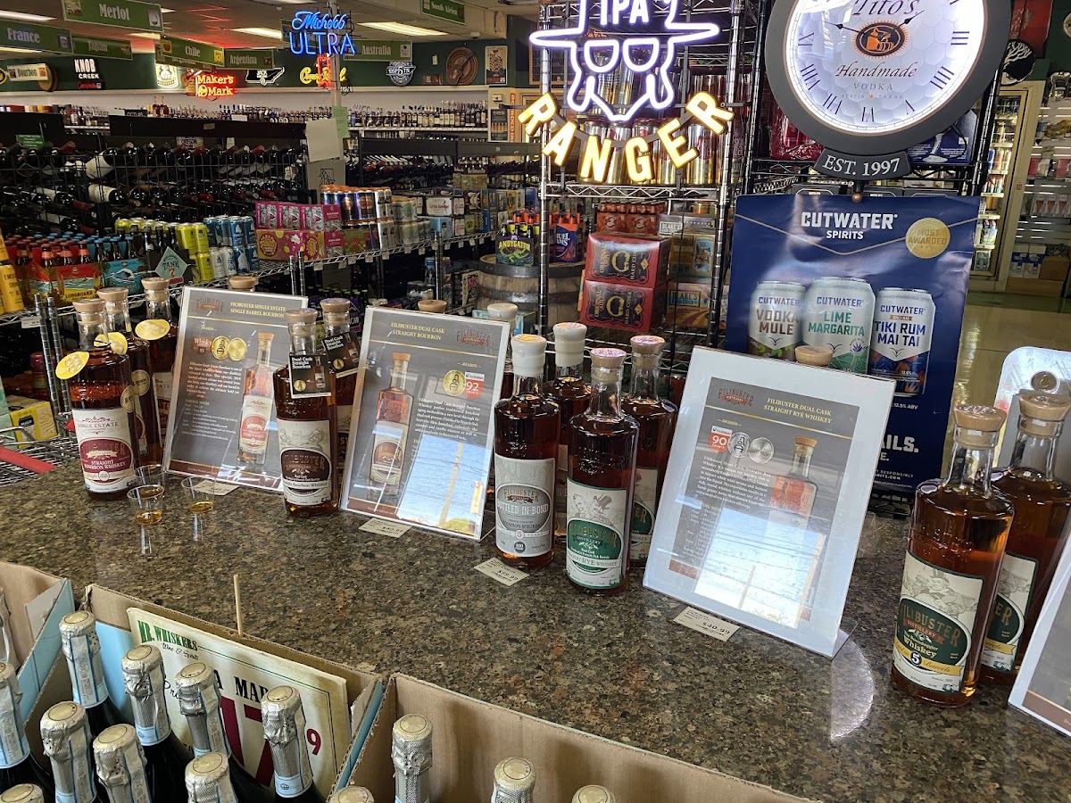 Great selection of wine. High end whiskey. Multiple sizes of variety of vodkas. Helpful and friendly staff. Lots of cold beer in the cooler as well. Highly recommend.